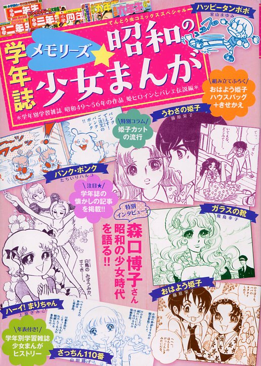 | 小学館 | てんとう虫コミックススペシャル 学年誌メモリーズ 昭和の少女まんが 学年別学習誌 昭和49〜56年の作品 姫ヒロインとバレエ伝説編 巻頭付録「姫子ちゃんきせかえ」(小学二年生6月号ふろく) 組立付録「姫子ちゃんハウスバッグ」 (1976年「小学二年生」6月号より) コミック作品雑誌完全再現 おはよう! 姫子 (1976年「小学一年生」6月号より) おはよう! 姫子 (1976年「小学二年生」4月号より) うわさの姫子 (1977年「小学六年生」4月号より) コラム 姫子カットの流行 |